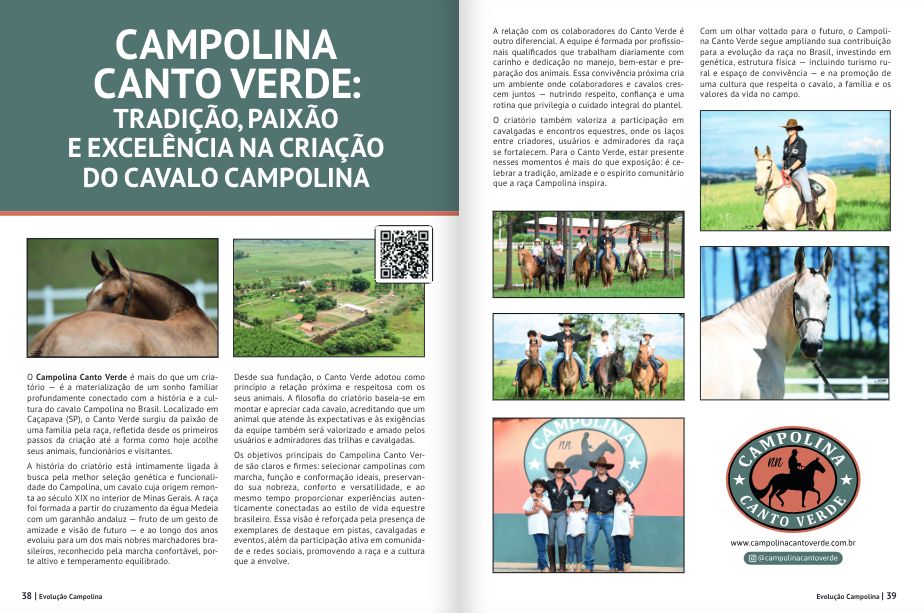 Originário de Minas Gerais, o Campolina se destaca por seu porte elegante, andamento confortável e temperamento dócil, sendo uma raça versátil para diversas atividades.